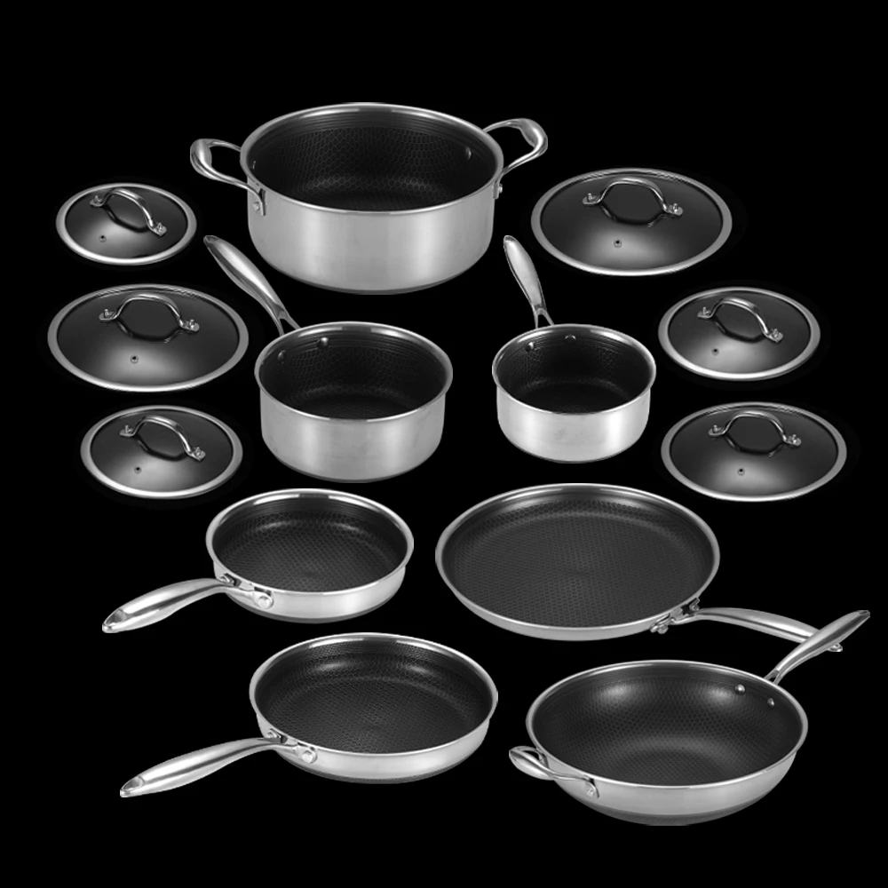 20 Pc Hybrid Cookware Set W/ Lids Stainless Steel Wok Kitchenware 3-ply Hex Stainless Steel Clod Honeycomb Pots Pans Set